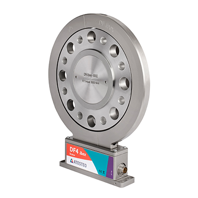 The DF ibex series consists of high-precision torque-measuring flanges designed with standardized DIN flange dimensions and a separate stator ring, enabling exceptional measurement accuracy. The series features digital telemetry with a 24-bit A/D converter and a 16-bit D/A converter for analog output, offering a total sampling rate of up to 25 kHz. Maximum rotational speed reaches up to 25,000 rpm, with an operating temperature range of 0 to 85 °C. The nominal torque range is selectable between 500 and 10,000 Nm.