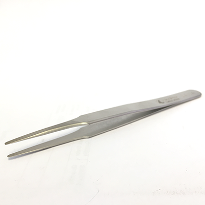 Swiss Made ideal-tek flat tweezers. 120 mm long with round tips. Ideal for gage handling.